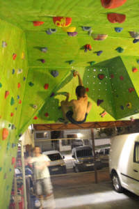 Lo construimos en dos etapas. Mi hijo y yo construimos la primera parte. Pero se hizo bastante popular y pronto se volvió demasiado pequeño. Entonces comenzamos en la siguiente parte. Dos niños al lado, y mi buen amigo Terrance le dio una gran mano al edificio. La construcción es de madera, nada complicado, no hay ciencia espacial. Trabajamos con una idea básica en mi cabeza, pero la corté y cambié a medida que avanzaba. Fue un trabajo duro, especialmente para mí, ya que mi trabajo diario está basado en la oficina, pero es muy divertido. Hemos sacrificado 5 días de escalada en total y bastantes noches.